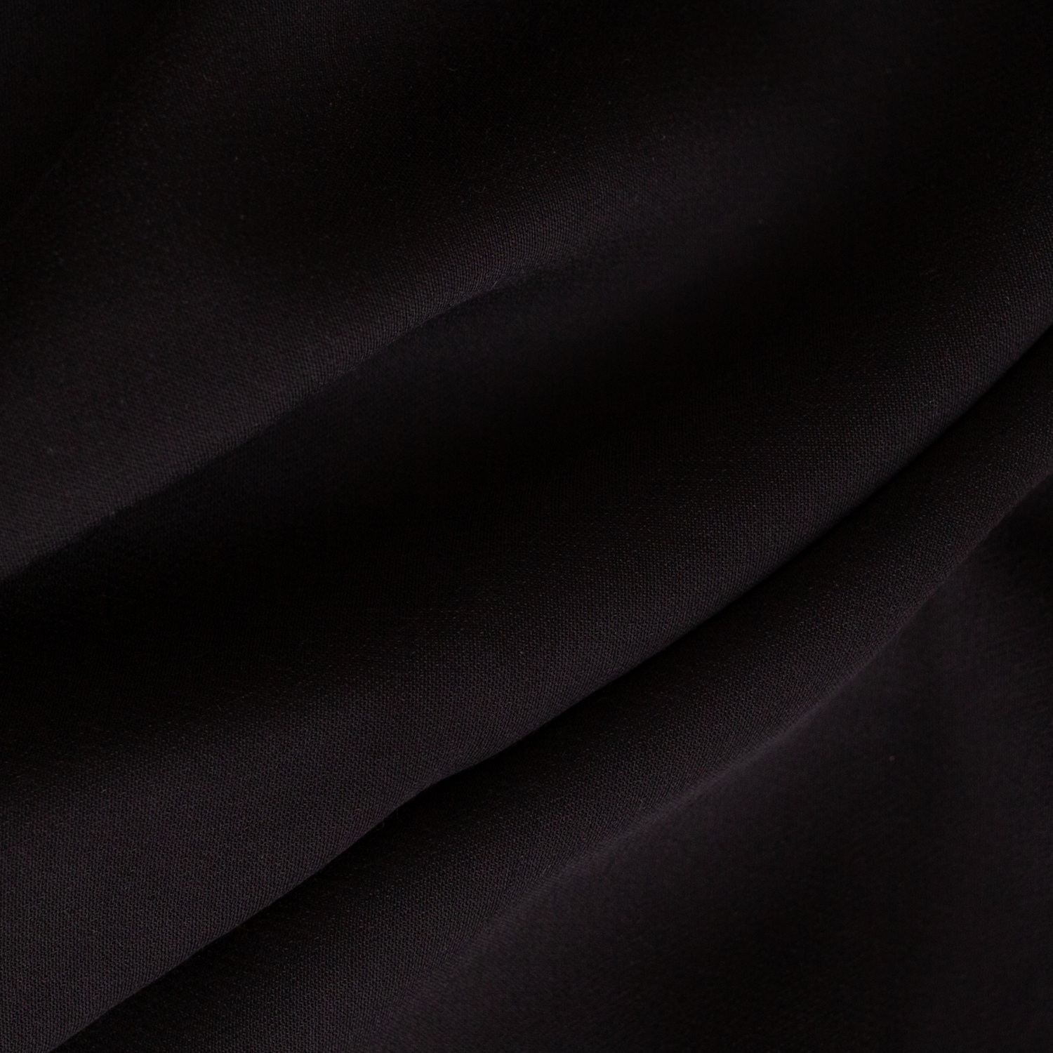 Ткань турецкая вискоза плотностью 125 гр/м2, шириной 135 см. Цвет чёрный. Используется для пошива рубашек, платьев, юбок, брюк.